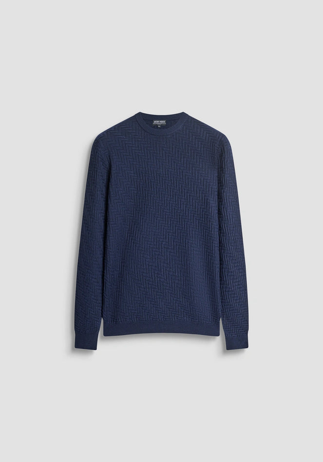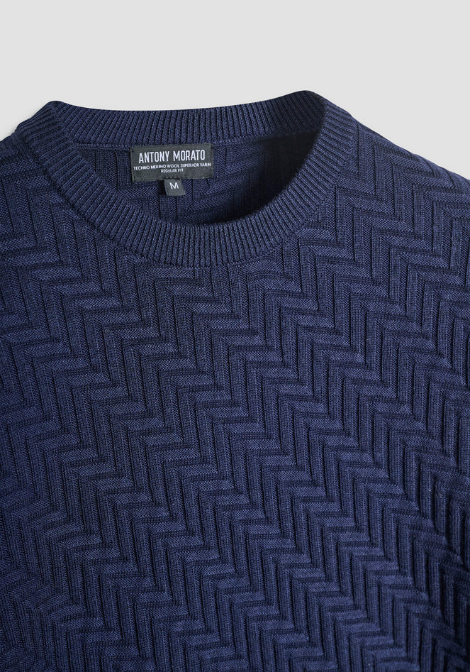 Maglione girocollo regular fit realizzato in morbida lana con sofisticato motivo jacquard tridimensionale a spina di pesce, che dona un elegante effetto texture. Girocollo, polsini e orlo rifiniti a costine. Un capo versatile che si adatta a diverse occasioni, dal casual quotidiano agli impegni del weekend, rappresentando una scelta perfetta per un guardaroba contemporaneo e senza tempo. Composizione: 40% poliestere, 29% acrilico, 25% poliammide, 6% lana merino. Lavaggio in lavatrice a 30°, non candeggiare, asciugare in piano, stirare max a 110°, non lavare a secco. Codice prodotto MMSW01533-YA5000887073 A25