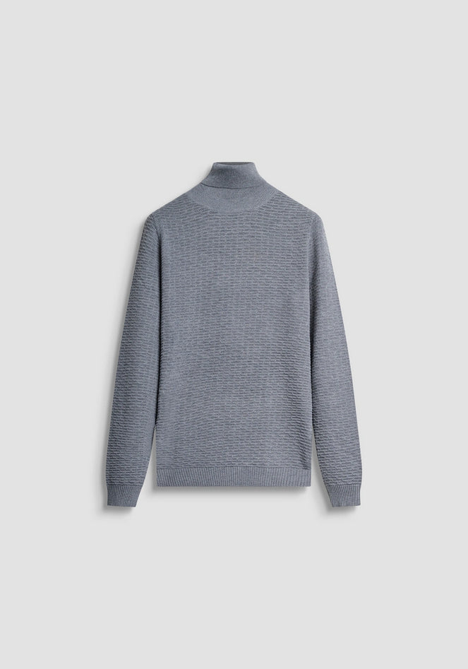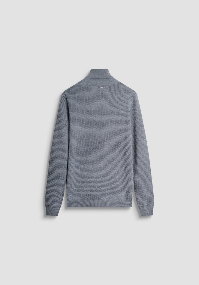 Maglia a collo alto dalla vestibilità regular, realizzata in misto lana Merino, espressione di eleganza casual e comfort sofisticato. La lavorazione orizzontale a coste crea un raffinato effetto tridimensionale, aggiungendo carattere e profondità al design. La lana Merino, scelta per le sue naturali proprietà termoregolanti, offre calore e traspirabilità senza appesantire. Finiture a costine su collo, polsi e orlo completano il modello. Composizione: misto lana Merino. Lavaggio in lavatrice a 30°, non candeggiare, asciugare in piano, stirare max a 110°, non lavare a secco. Codice prodotto MMSW01550-YA5000889013 A25