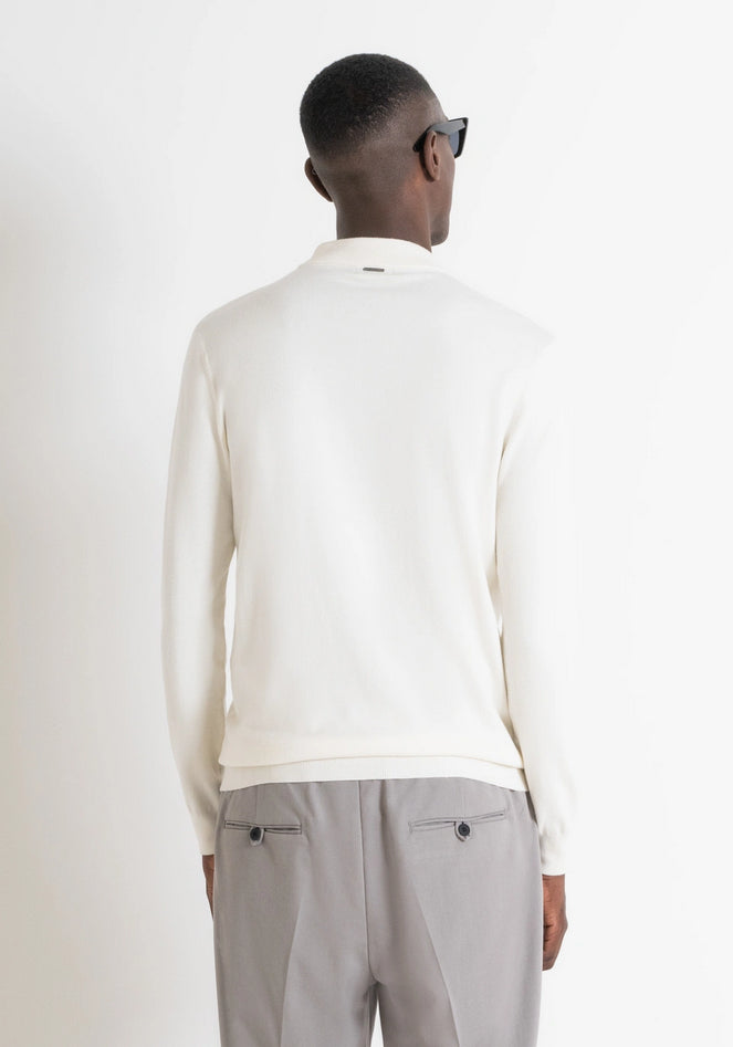 Maglia pullover slim fit realizzata in filato misto viscosa elastica, caratterizzata da una linea contemporanea e raffinata. Morbida e confortevole, presenta un colletto di altezza media e finiture in maglia elastica su fondo e polsini. Ideale anche come sotto giacca, è un capo essenziale per un look casual ma impeccabile. Composizione: 80% viscosa, 18% poliammide, 2% elastan. Lavaggio: in lavatrice max 30° ciclo molto delicato; non candeggiare; non usare l'asciugatrice; stirare max a 110°; non lavare a secco. Codice prodotto MMSW01407-YA5000021012 A25