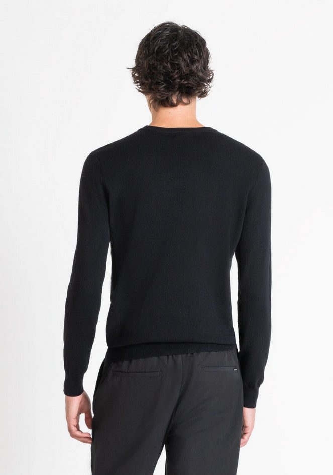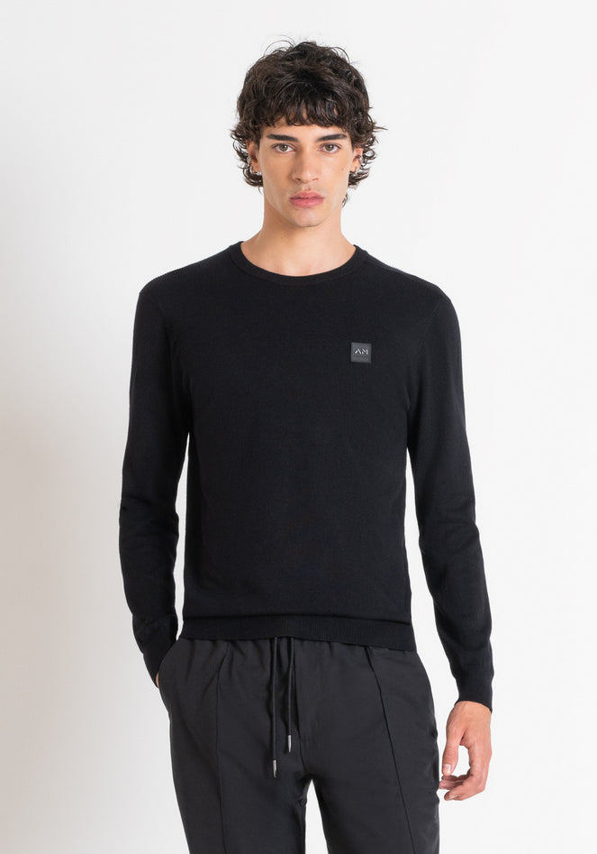 Maglia pullover girocollo slim fit realizzata in filato misto viscosa elastica dal feeling compatto e morbido. Linea contemporanea ispirata allo stile sportivo, ideale per un look casual ma curato. Fondo e polsini in maglia elastica, con piccola patch gommata logata sulla parte frontale. Composizione: 80% viscosa, 18% poliammide, 2% elastan. Lavaggio: in lavatrice max 30° ciclo molto delicato; non candeggiare; non usare l'asciugatrice; stirare max a 110°; non lavare a secco.Codice prodotto MMSW01439-YA5000029000 A25