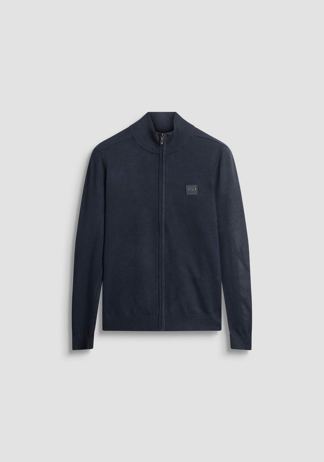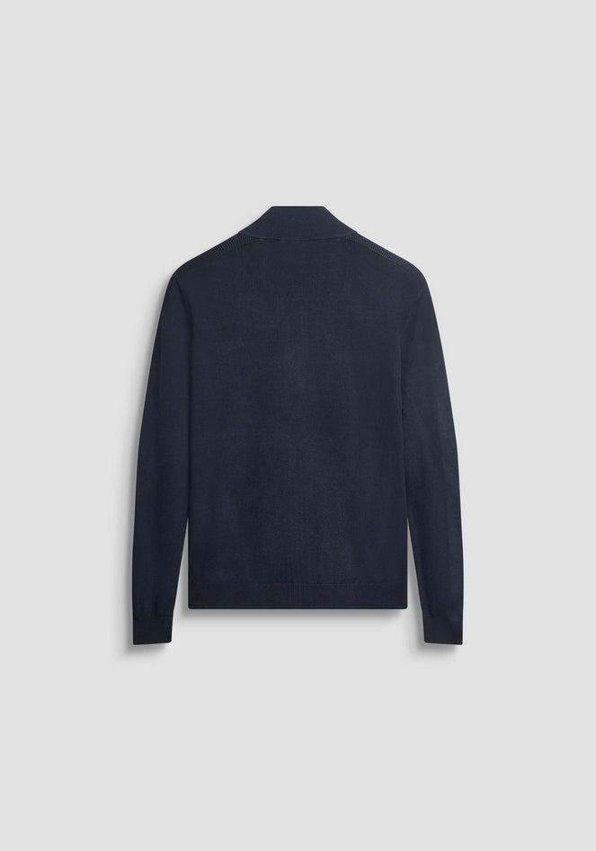 Maglia pullover girocollo slim fit realizzata in filato misto viscosa elastica dal feeling compatto e morbido. Linea contemporanea ispirata ai capi sportivi, ideale per uno stile casual ma raffinato. Dotata di chiusura frontale con zip, colletto, fondo e polsini in maglia elastica. Piccola patch gommata logata applicata sulla parte frontale. Composizione: 80% viscosa, 18% poliammide, 2% elastan. Lavaggio: in lavatrice max 30° ciclo molto delicato; non candeggiare; non usare l'asciugatrice; stirare max a 110°; non lavare a secco.Codice prodotto MMSW01441-YA5000027139 A25