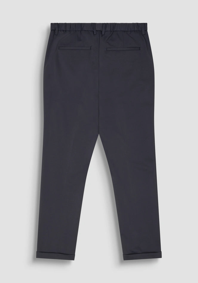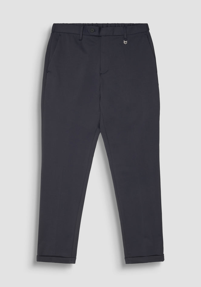 Pantalone "Rad" dalla vestibilità slim fit, con gamba alla caviglia e risvolto. Realizzato in tessuto tecnico bi-stretch antipiega, accompagna ogni movimento offrendo massimo comfort e libertà, mantenendo al tempo stesso una linea impeccabile. La chiusura con zip e bottone laterale, la stiratura con piega centrale e le tasche a filetto laterali e posteriori donano un look pulito e sofisticato. L'elastico posteriore in vita assicura una vestibilità perfetta e maggiore comodità. Composizione: 75% poliammide 25% elastan. Non lavare in acqua, non candeggiare, non usare l'asciugatrice, stirare max a 110°, lavaggio a secco con tretracloroetilene. Codice prodotto MMTS00059-FA6003007139 A25
