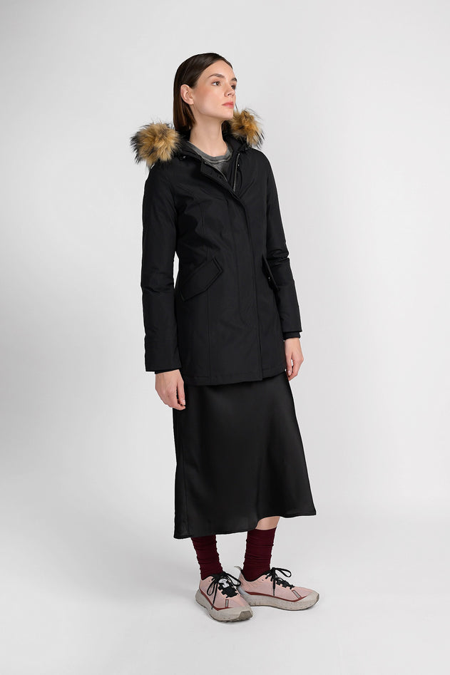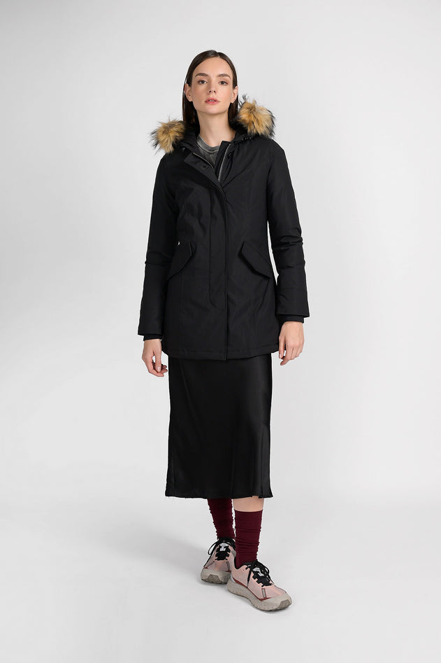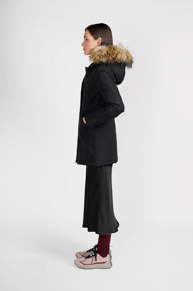 Una giacca ispirata allo stile canadese, che la dice lunga su di te, per coloro che preferiscono la pelliccia sintetica, abbiamo realizzato un look identico ma usando materiali diversi, che può anche essere rimossa quando vuoi, non importa a quali avventure andrai incontro durante l'inverno: non uscirai di casa senza averlo addosso, grazie al taglio leggermente avvitato, per aggiungere un tocco di femminilità, ti sentirai bellissima. Tessuto: Tech. Composizione tessuto: 100% Polyester. Imbottitura: piuma 50/50. Per mantenere le caratteristiche originarie del vostro capo e garantirne una maggior durata nel tempo vi raccomandiamo di seguire con attenzione le istruzioni di lavaggio indicate, raccomandiamo inoltre di affidare il vostro capo a lavanderie specializzate. Codice prodotto CN.GCM201-WFFBLA A25