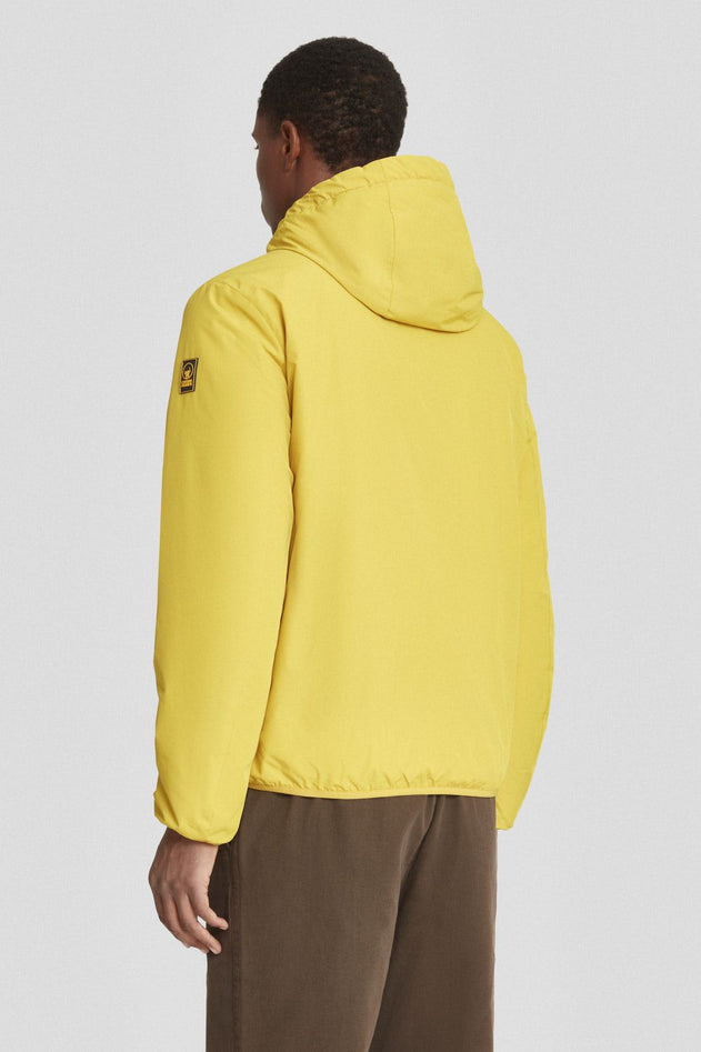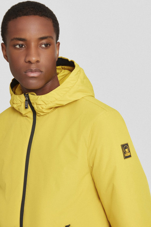 Giacca imbottita uomo con cappuccio dal design semplice e pulito. L'imbottitura in ovatta 80gr offre comfort e calore, mentre il tessuto poly taslan, leggero e resistente, è trattato DWR per proteggere dagli agenti atmosferici. La fodera interna, in tono sul davanti e gialla sul retro, rende il capo immediatamente riconoscibile come una creazione di Ciesse Piumini. Le personalizzazioni in nastro gros grain giallo/nero completano il look con un tratto tecnico e distintivo. Vestibilità regular, fodera gialla centrale e posteriore, zip nere, puller logati, rifinitura con bordi in lycra su polsi e fondo, tasche laterali con zip, elastico logato nero interno al cappuccio, cappuccio regolabile con cordino elastico e stopper, personalizzazioni con gros grain giallo/nero, tasca interna al petto con zip gialla, trattamento di impermeabilizzazione (DWR), logo giallo/nero su manica sinistra. Composizione: tessuto esterno 100% poliestere, tessuto interno 100% nylon, imbottitura 100% poliestere. Codice prodotto 253CPMJ08544 P1410P6106XN A25