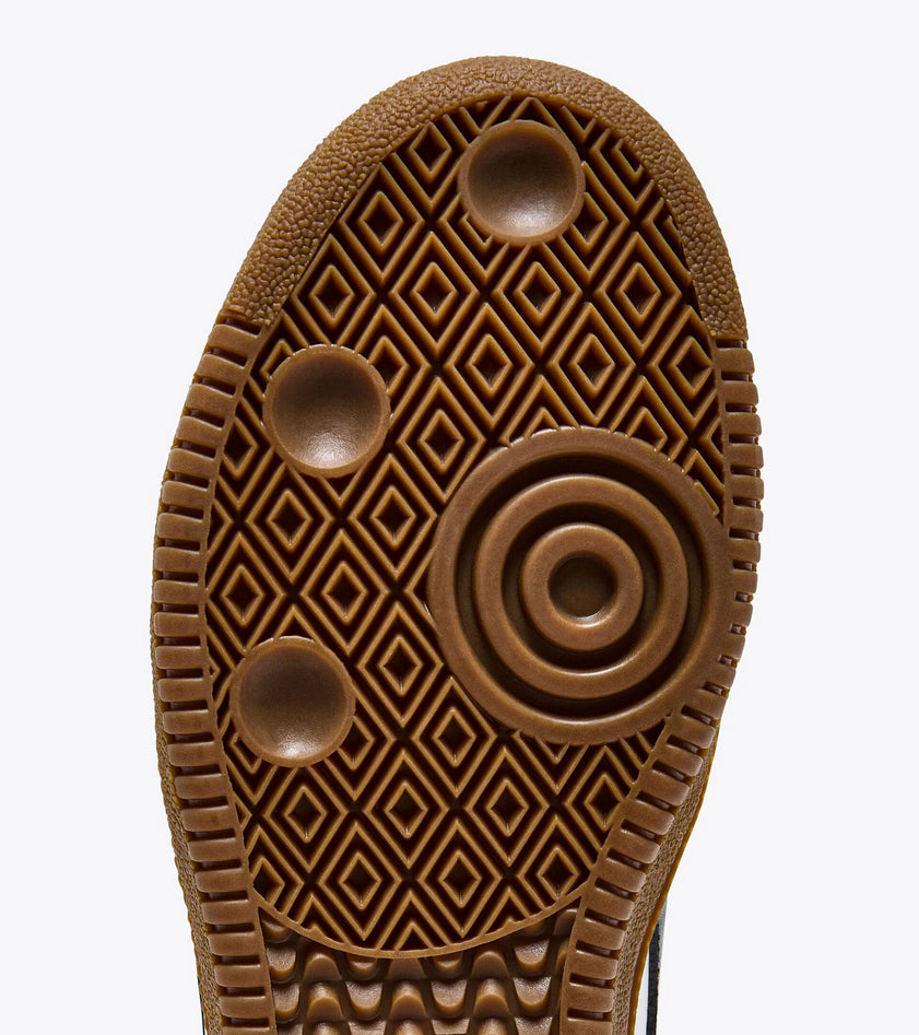 Stile terrace anni '80 reinterpretato: Trainer nasce come scarpa indoor da pallamano e torna oggi in collezione come sneaker dallo stile classico e intramontabile. Negli anni '80 conquista subito tifosi e controculture grazie alla sua comodità, merito della suola con punti di pressione ispirata alla pallamano. Realizzata in pelle premium con dettagli in pelle pigskin, presenta tomaia in pelle bovina con trattamento stone washed, plantare estraibile in pelle, suola in gomma e lacci in cotone. Codice prodotto 501181246C0351 A25