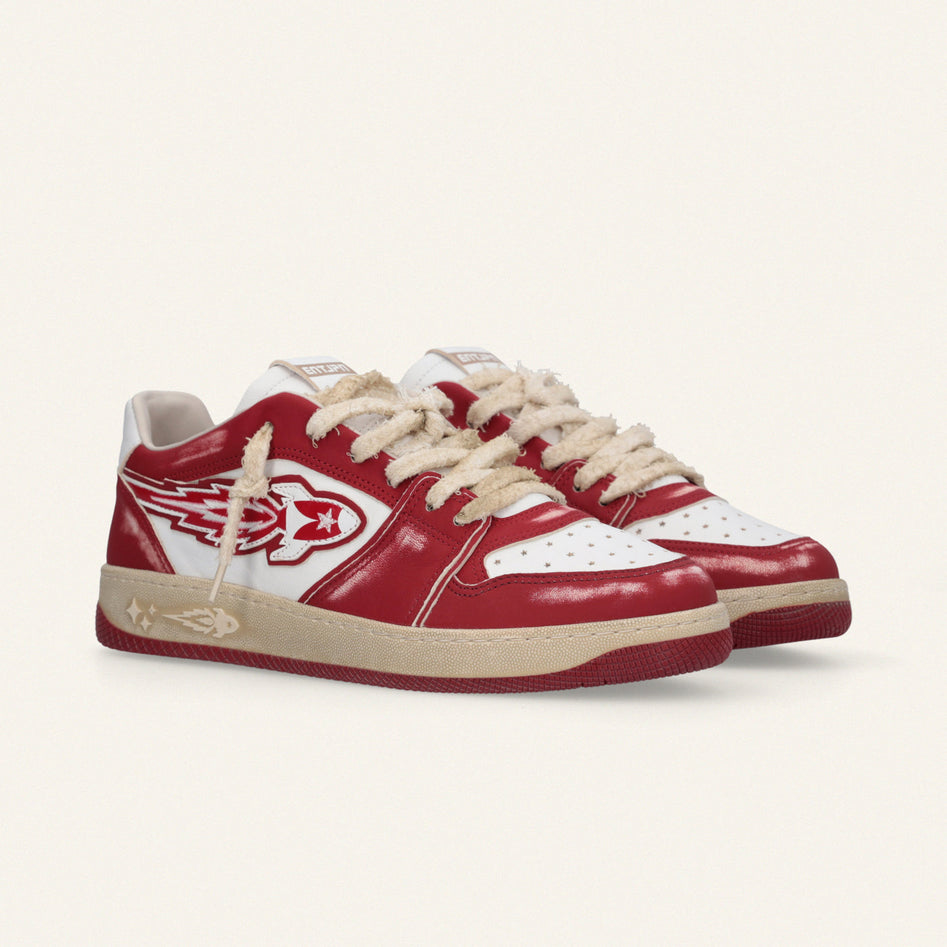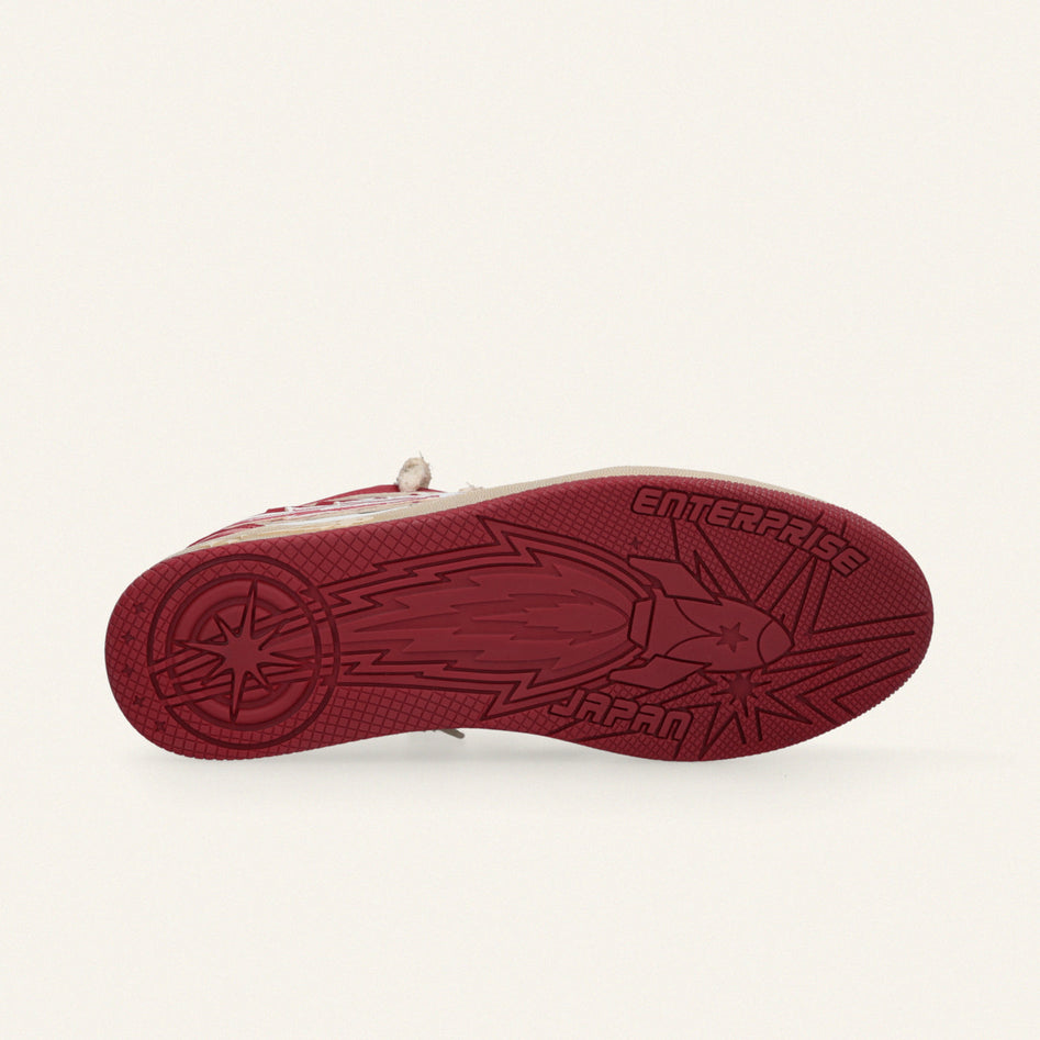 Le sneakers ENTJPN Egg Rocket sono un tributo alla bellezza dell'imperfezione, un modello urban dallo stile distintivo realizzato con una tomaia in pelle per un effetto vissuto e autentico. Le superfici contrastanti donano un'estetica intensa, irregolare e viva, capace di raccontare la storia di chi le indossa. Il fondo in TR assicura leggerezza, flessibilità e resistenza, rendendole ideali per l'uso quotidiano. La suola bicolore è arricchita da grafiche embossed e incisa con l'iconico logo ENTJPN Rocket, presente anche sulla tomaia, segno distintivo inconfondibile del brand. Ogni dettaglio celebra l'usura controllata, il colore imperfetto e il tempo che lascia il segno, trasformando ogni paio in un pezzo unico e irripetibile. Conservare lontano da fonti di calore dirette, evitare il contatto con acqua, solventi aggressivi o contenenti alcool, non pulire con prodotti abrasivi. Codice prodotto BG5003PX674S3842WHITE/MARSALA A25