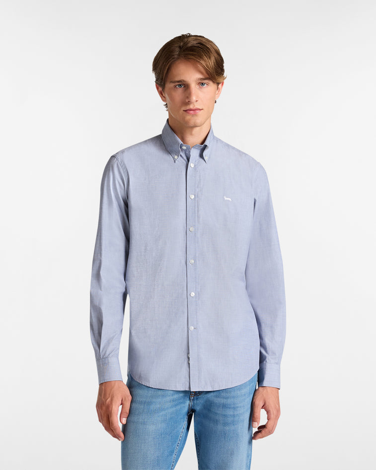 Harmont & Blaine firma una camicia da uomo in leggero cotone fil-à-fil dalle linee pulite ed essenziali e dalle tonalità delicate che diventerà un autentico must-have del vostro guardaroba quotidiano. Il modello è presentato in una confortevole vestibilità regular, ed è dotato di un pratico collo con bottoncini, mentre il tocco di stile del brand è dato dall'iconico bassotto ricamato sul petto e dagli interni a contrasto nei polsi e nel sottocollo. Cura e Manutenzione: 100% Cotone, programma 40° lavaggio normale, non candeggiare, non centrifugare, stiratura a bassa temperatura. Codice prodotto CRP011012978B801 A25