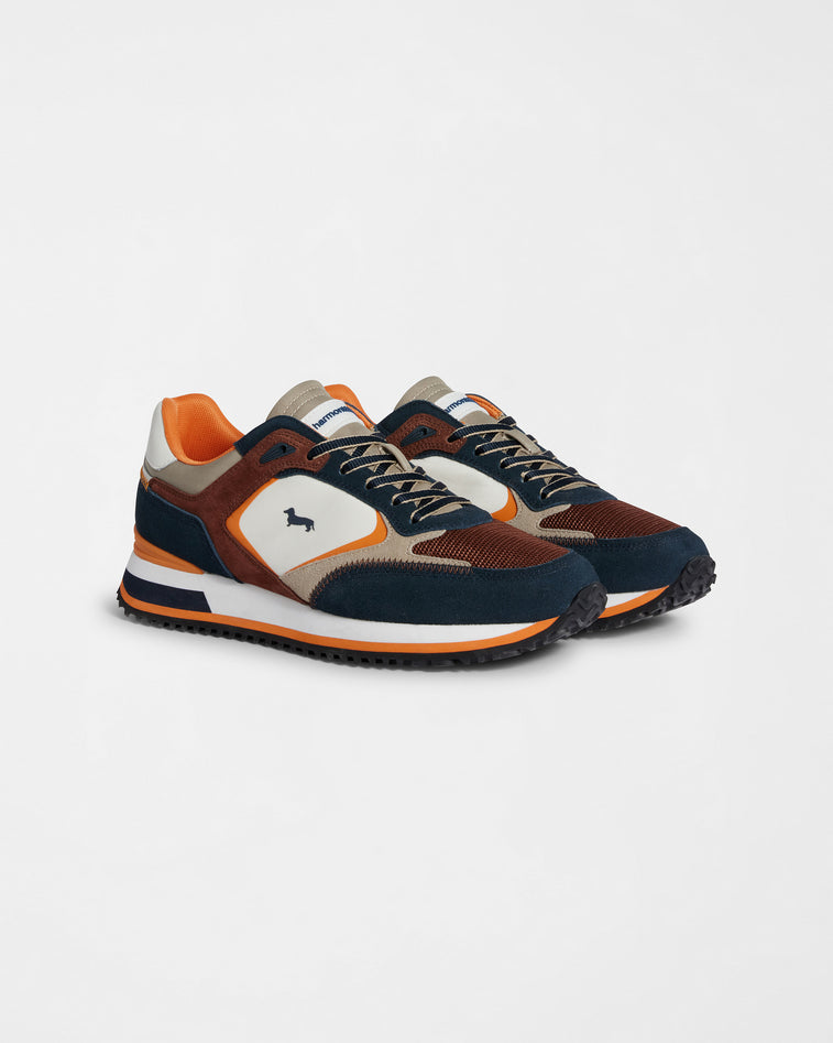 Sneaker sportiva con inserti multistrato, logo laterale impresso sulla tomaia, chiusura con lacci frontali, punta rinforzata con cuciture a vista, suola dentellata in gomma antiscivolo, design dinamico e casual. Codice prodotto EFM252.040.A60.BL1018386 A25