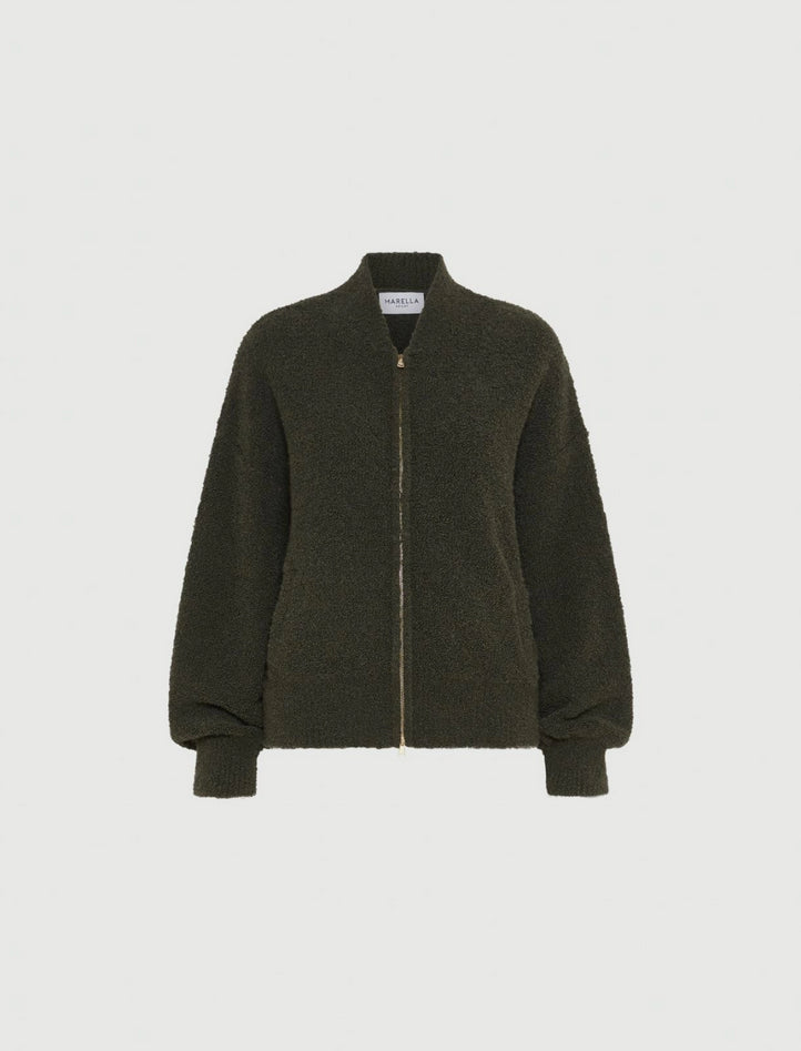 Giacca in filato di misto lana soft bouclé, fit morbido, collo rialzato, chiusura con zip metallica a doppio cursore, spalla scesa e tasche verticali a filetto, polsi e fondo capo in maglia a costine. Composizione: 61% acrilica, 21% lana, 18% poliestere. Lavaggio: in lavatrice max 30 gradi ridotta azione meccanica, non candeggiare, non asciugare in tamburo, asciugare in piano in ombra, ferro tiepido max 120 gradi c, lavare a secco delicato con percloroetilene, lavare separatamente. Codice prodotto ORONTE 2523906044270002 A25