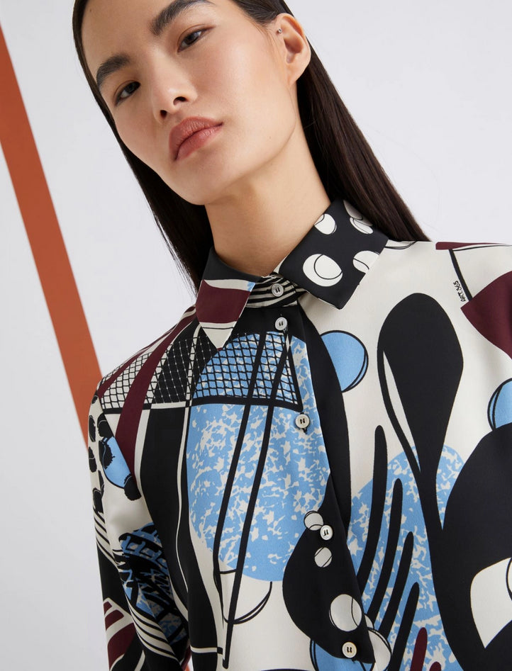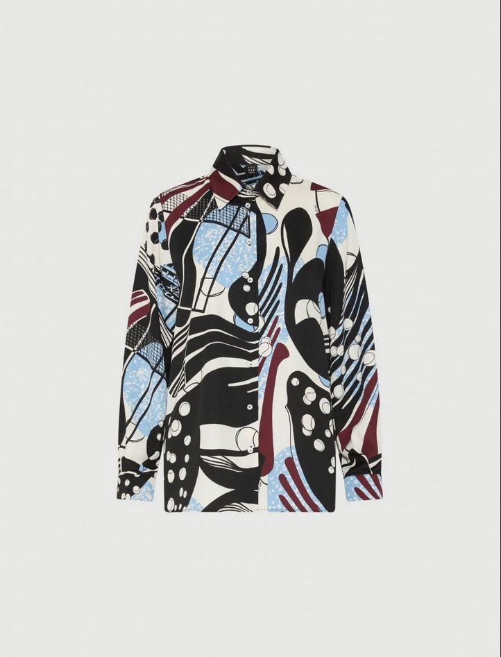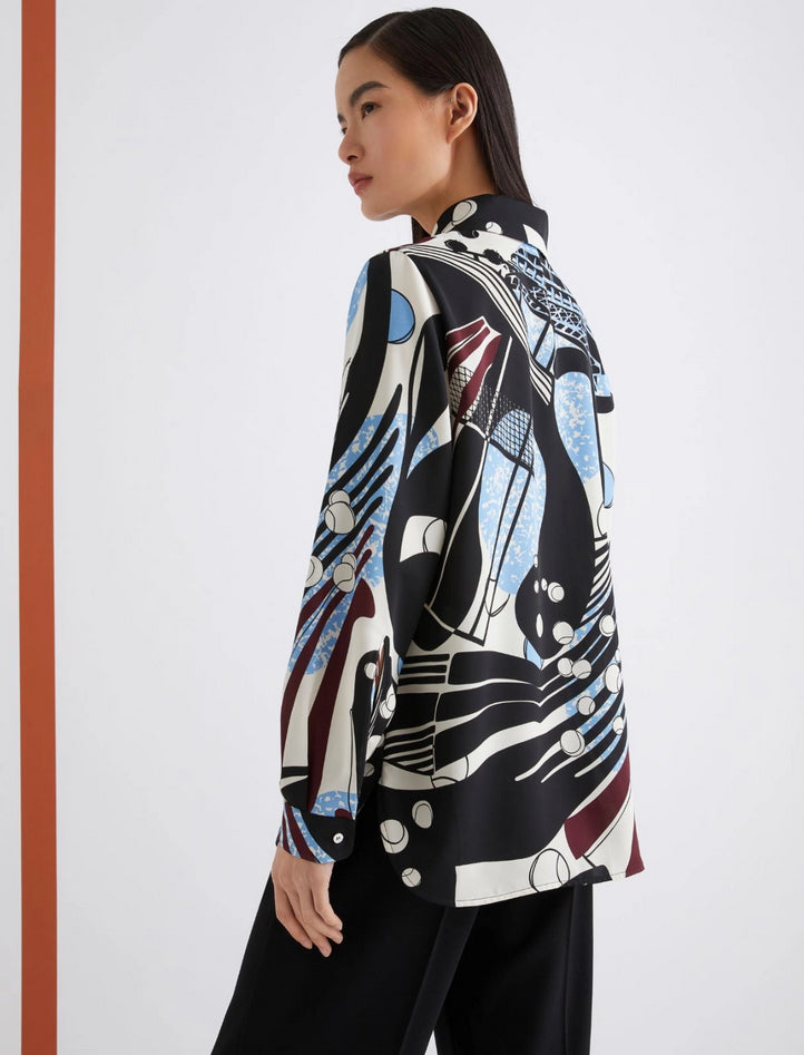 Camicia in satin leggero con stampa *365 Ball Machine*, fit regolare, collo a camicia, chiusura con bottoni a vista, fondo stondato con spacchi laterali. Tessuto principale contenente oltre il 50% di poliestere riciclato. Composizione: 100% poliestere. Lavaggio: in lavatrice max 30° con ridotta azione meccanica, non candeggiare, non asciugare in tamburo, asciugare appeso in ombra, ferro tiepido max 120°, lavare a secco delicato con percloroetilene; contiene parti non tessili di origine animale. Codice prodotto SPINTA 2523116033270001 A25