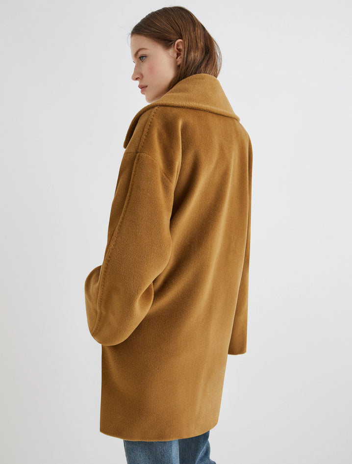 Rever molto ampio e linea avvolgente definiscono questo giaccone in pura lana con chiusura doppiopetto. Versatile e caldo, si indossa con i denim o su blazer e pants business mantenendo un'eleganza immutata. Giaccone in beaver di pura lana vergine con fodera interna, fit morbido, scollo con rever e spalle con linea scesa, chiusura doppiopetto con bottoni a vista, tasche laterali con filettone. Composizione: tessuto 100% lana vergine, fodera 100% acetato. Lavaggio: non lavare in acqua, non candeggiare, non asciugare in tamburo, ferro tiepido max 120 gradi C, lavare a secco delicato con percloroetilene, non lavare ad umido professionale. Codice prodotto DUCATO 2523086092200003 A25