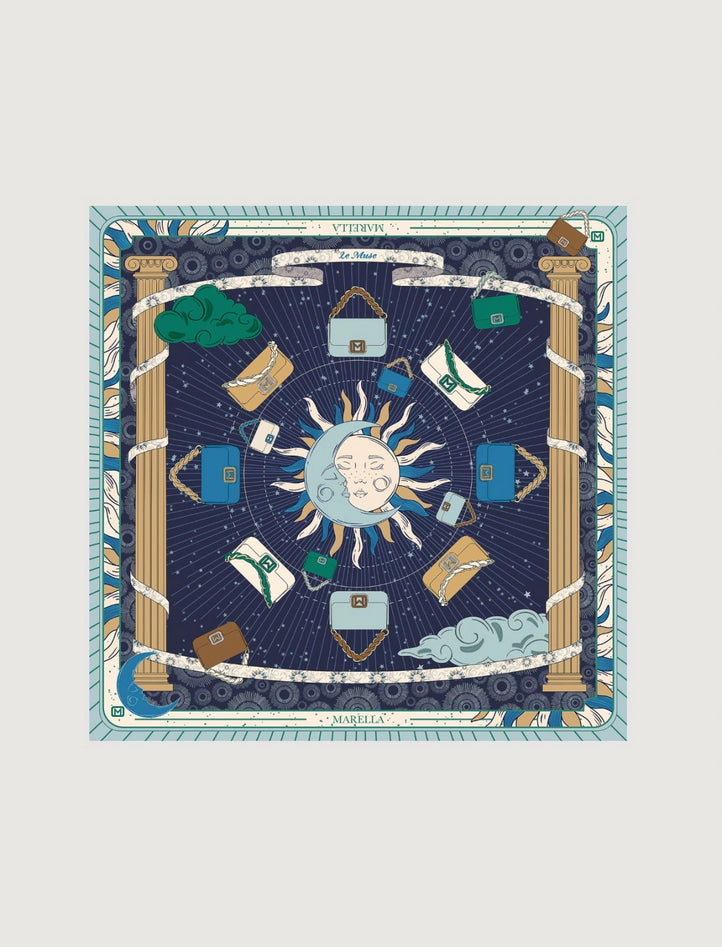 Al collo, tra i capelli o annodato sulla borsa, il foulard in seta è l'accessorio che dichiara la tua femminilità. Gioca con lo styling e decidi chi vuoi essere oggi. Foulard in twill di pura seta, stampa progetto Le Muse, misura 90 x 90 cm, consegnato con confezione personalizzata. Composizione: 100% seta. Lavaggio: non lavare in acqua, non candeggiare, non asciugare in tamburo, ferro tiepido max 120 °C, lavare a secco delicato con percloroetilene, non lavare ad umido professionale. Codice prodotto AGRO 2523546076270002 A25