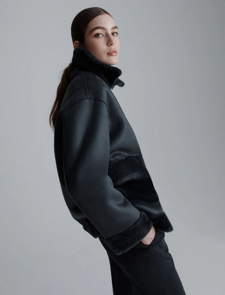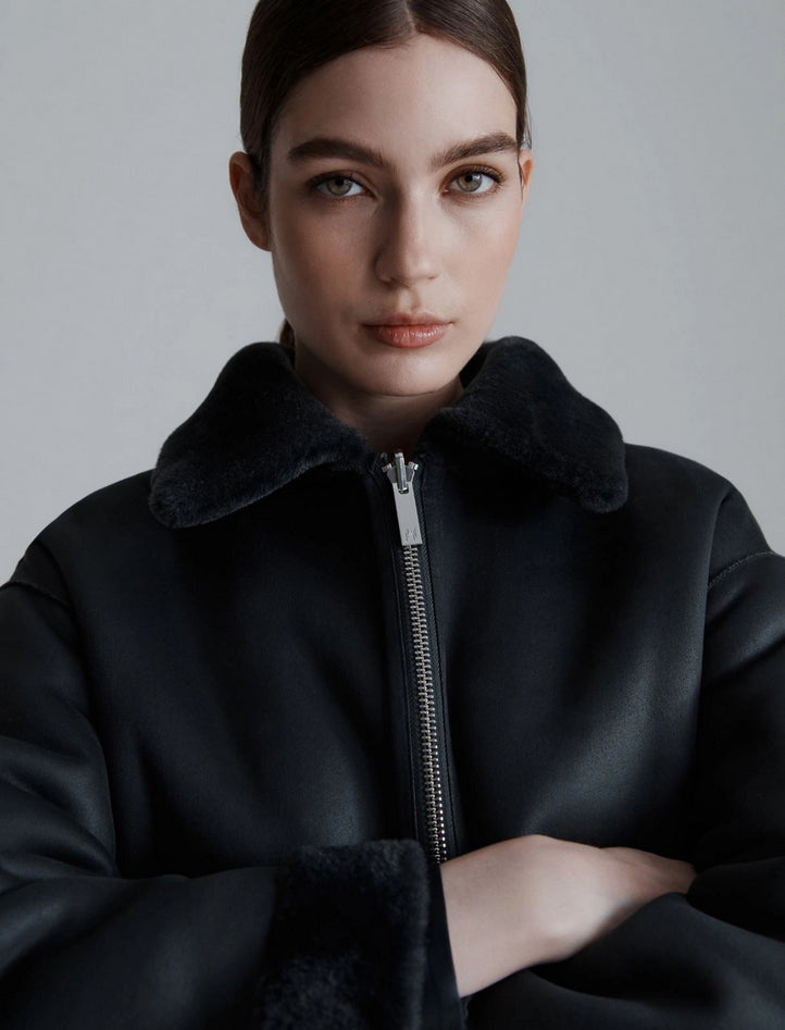 Reversibile per un doppio utilizzo, questa giacca mixa matericità e stile con una linea cocoon che avvolge la silhouette. In jersey dal finish vellutato su un lato e tessuto effetto furry dall'altro, è completata da collo a camicia, chiusura con zip in metallo a doppio cursore, spalla scesa e tasche applicate. Composizione: tessuto esterno 100% poliestere, tessuto interno 100% poliestere (spalmature escluse). Lavaggio: non lavare in acqua, non candeggiare, non asciugare in tamburo, non stirare, lavare a secco delicato con percloroetilene, non lavare ad umido professionale, lavare il capo allacciato. Codice prodotto FRESA 2523456035270004 A25