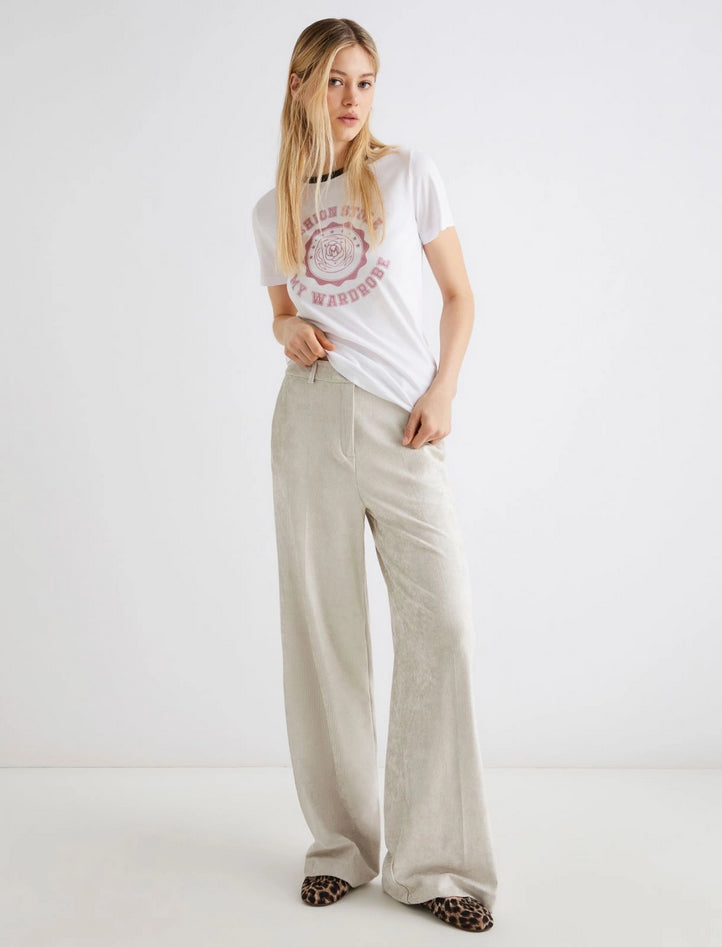 Ispirati all'estetica seventies, i pantaloni in velluto a coste tornano alla ribalta grazie alla grande versatilità e al tocco informale del tessuto. In viscosa, per una luminosità speciale. Tessuto principale contenente materie prime derivanti dalla cellulosa del legno, fibra ricavata nel rispetto del patrimonio forestale. Pantalone in jersey effetto velluto a coste di misto viscosa, fit dritto, chiusura con bottone a vista, cintura con passanti, tasche laterali alla francese e posteriori con filetto, piega stirata fronte e retro. Composizione: 76% viscosa, 21% poliammide, 3% elastan. Lavaggio: lavare a mano in acqua fredda max 40°, non candeggiare, non asciugare in tamburo, asciugare appeso in ombra, ferro tiepido max 120 °C, lavare a secco delicato con percloroetilene, non lavare ad umido professionale, rovesciare il capo prima del lavaggio, stirare a rovescio. Codice prodotto AVANA 2523786034270001 A25