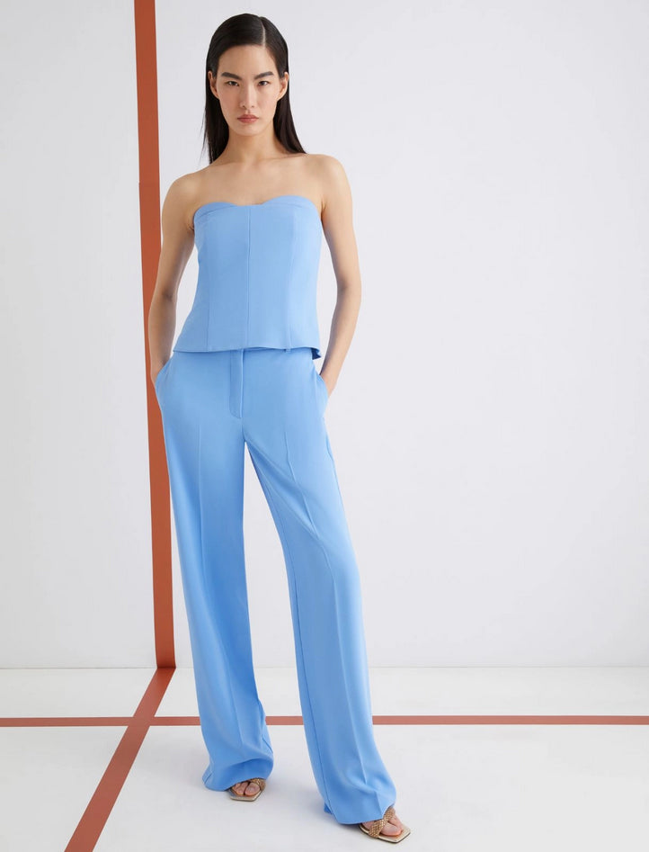 Pantalone in envers satin con costruzione ispirata alla sartoria maschile, fit dritto, chiusura con gancio a uomo e zip, tasche laterali inserite e posteriore singola a filetto, piega stirata fronte e retro. Tessuto principale contenente una percentuale di poliestere riciclato superiore al 50%. Composizione: 100% poliestere. Lavaggio: in lavatrice max 30 gradi ridotta azione meccanica, non candeggiare, non asciugare in tamburo, asciugare appeso in ombra, ferro tiepido max 120 gradi c, lavare a secco delicato con percloroetilene. Codice prodotto PASCIA 2523136053270004 A25