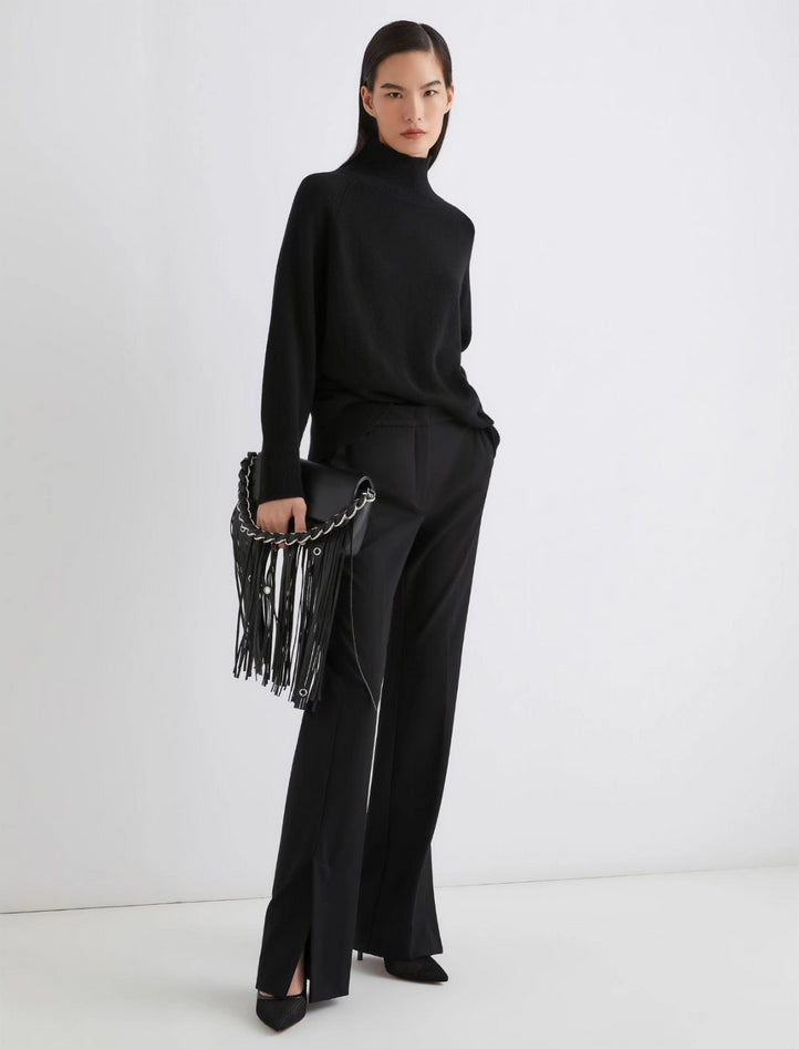 Slim per slanciare la silhouette, in jersey per flettersi ad ogni movimento: i nuovi pantaloni sono i compagni ideali delle tue giornate, per restare chic e comode in ogni occasione. Tessuto principale contenente materie prime derivanti dalla cellulosa del legno, fibra ricavata nel rispetto del patrimonio forestale. Pantalone in jersey punto Milano di misto viscosa stretch, fit aderente, chiusura con gancio a uomo e zip nascosti, cintura con passanti, tasche laterali alla francese e posteriori con filetto, spacco laterale alla caviglia con orlo impunturato. Composizione: 56% viscosa, 36% poliammide, 8% elastan. Lavaggio: lavare a mano in acqua fredda max 40°, non candeggiare, non asciugare in tamburo, asciugare appeso in ombra, ferro tiepido max 120 °C, lavare a secco delicato con percloroetilene, non lavare ad umido professionale. Codice prodotto ARTUR 2523786024270003 A25