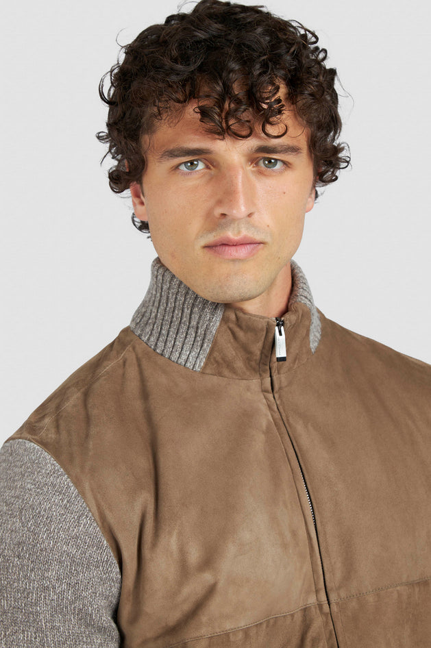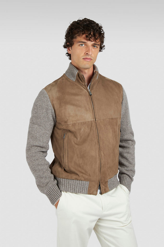Cardigan Hybrid zip-up Paul & Shark in suede, lana e cashmere finezza 5, lavorazione a maglia rasata, collo, polsi e balza a costine, manica lunga, vestibilità regular. Presenta fronte rivestito in suede, tasche laterali con zip e chiusura con zip a doppio cursore; filato naturalmente soffice e resistente, mix di materiali pregiati per un capo sofisticato e versatile. Composizione: esterno 70% lana vergine 30% cashmere, parte frontale e posteriore in vera pelle di capra, carrè e inserti 55% cotone 45% lino, fodera 100% cotone. Lavaggio: non lavare in acqua, non candeggiare, non asciugabile in asciugatrice, non stirare, lavaggio a secco non consentito. Codice prodotto 1531121874 A25