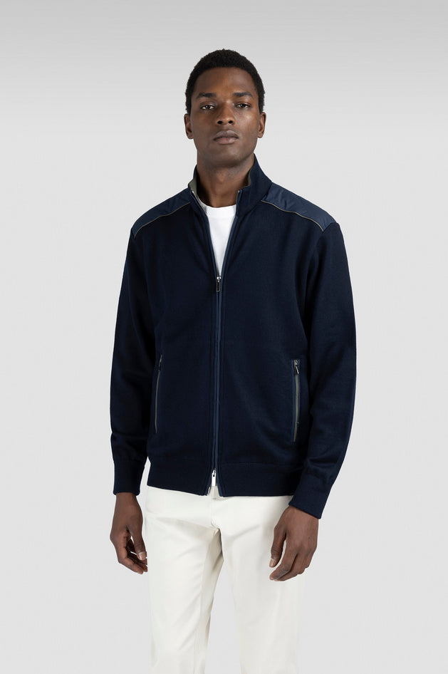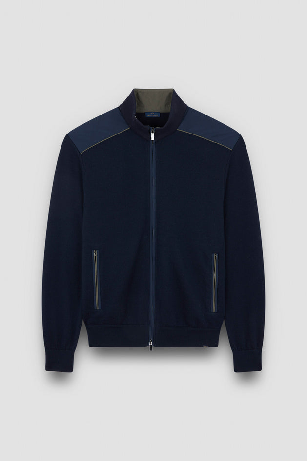 Cardigan zip-up Paul & Shark in lana Soft Cool Touch finezza 12 con dettagli in Typhoon® Platinum, lavorazione a maglia operata, collo, polsi e balza a costine, manica lunga, vestibilità regular. Presenta chiusura con zip a doppio cursore e tasche con zip; filato pressato a freddo per resistenza, morbidezza e scivolamento dell'acqua, con inserti in tessuto tecnico lussuoso per un capo funzionale ed elegante. Composizione: esterno 100% lana vergine, inserti 100% poliestere. Lavaggio: lavare in acqua max 30°, non candeggiare, non asciugare in asciugatrice, stirare con ferro non caldo (max 110°), lavaggio a secco possibile rispettando temperatura e umidità. Codice prodotto 1531123650 A25