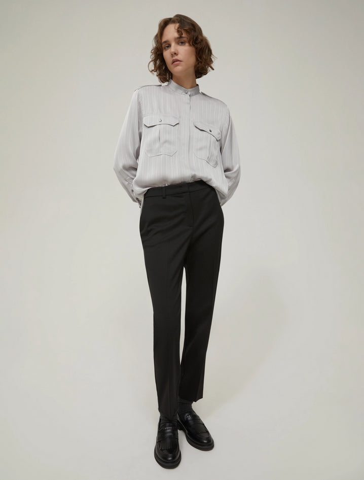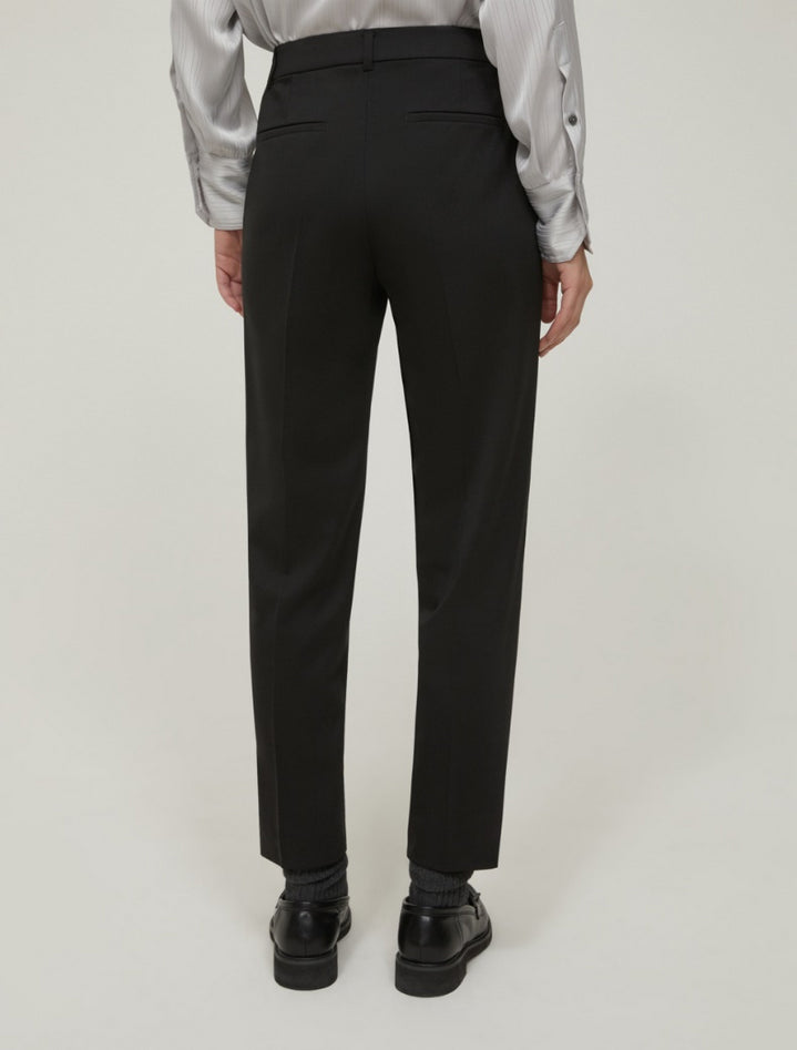 Pantaloni dal taglio slim sartoriale in twill di lana stretch, un capo essenziale del guardaroba invernale che garantisce stile e versatilità in ogni abbinamento. Presentano gamba affusolata, vita regolare con passanti e lunghezza alla caviglia. Piega stirata, tasche alla francese sul davanti e a filo sul retro. Chiusura nascosta con gancio e zip per un effetto pulito e raffinato. Composizione: 97% lana vergine, 3% elastan. Lavaggio: non lavare in acqua, non candeggiare, non asciugare in tamburo, stirare a temperatura massima di 120°, lavare a secco delicato con percloroetilene, non lavare ad umido professionale. Codice prodotto CALENDA 2521136163200004 A25