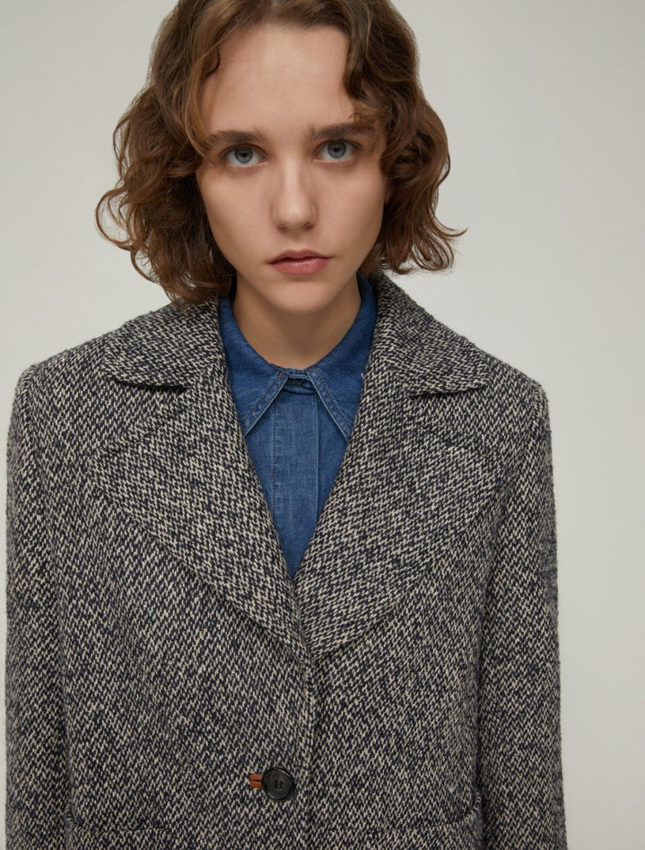 Cappotto in tweed dal fascino british reinterpretato in chiave contemporanea, con silhouette a matita e taglio monopetto dalle linee diritte e morbide. Realizzato in tweed di lana blend, presenta ampi revers, tasche applicate sul davanti e spacco profondo sul retro. Interamente foderato per garantire comfort e struttura impeccabile. Composizione: tessuto 31% cotone, 25% poliestere, 20% lana, 16% acrilica, 8% altre fibre; fodera 62% acetato, 38% poliestere. Lavaggio: non lavare in acqua; non candeggiare; non asciugare in tamburo; stirare a temperatura massima di 120°; lavare a secco delicato con percloroetilene; non lavare ad umido professionale; lavare il capo allacciato e rovesciato; contiene parti non tessili di origine animale. Codice prodotto KASTEL 2521016063200003 A25