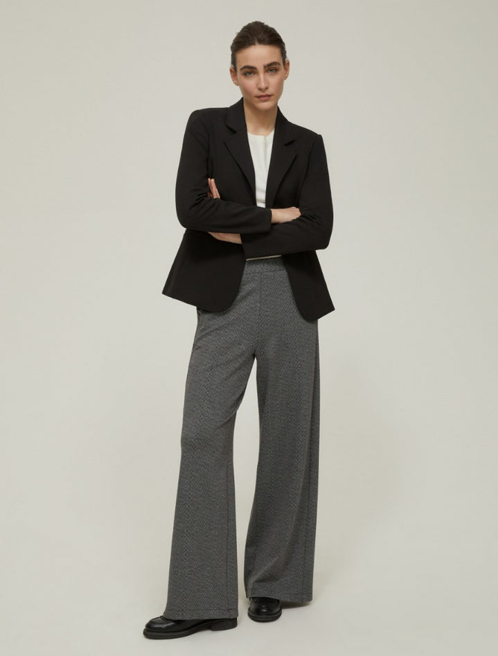 Sintesi perfetta tra eleganza sartoriale e praticità moderna, il blazer slim in jersey stretch interpreta il classico con un tocco di comfort. Realizzato in punto Milano di viscosa, si distingue per il taglio monopetto a un bottone, il collo a revers e le linee asciutte che seguono la silhouette con naturalezza. Le tasche a filo sul davanti e la parziale fodera interna completano il design essenziale e raffinato. Ideale con i pantaloni coordinati per un look formale contemporaneo, o con denim per un'eleganza rilassata. Composizione: tessuto a maglia 65% viscosa, 30% poliammide, 5% elastan; fodera 62% acetato, 38% poliestere. Lavaggio: non lavare in acqua; non candeggiare; non asciugare in tamburo; stirare a ferro tiepido (max 120°C); lavare a secco delicato con percloroetilene; non lavare ad umido professionale; non stirare i bottoni. Codice prodotto NEGOZIO 2521916106200003 A25