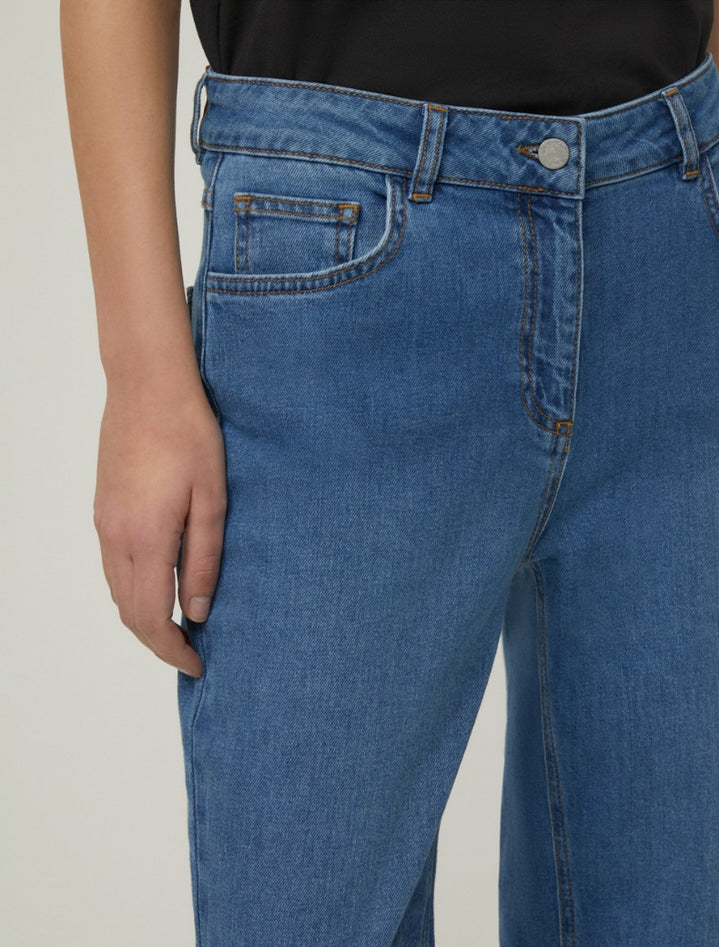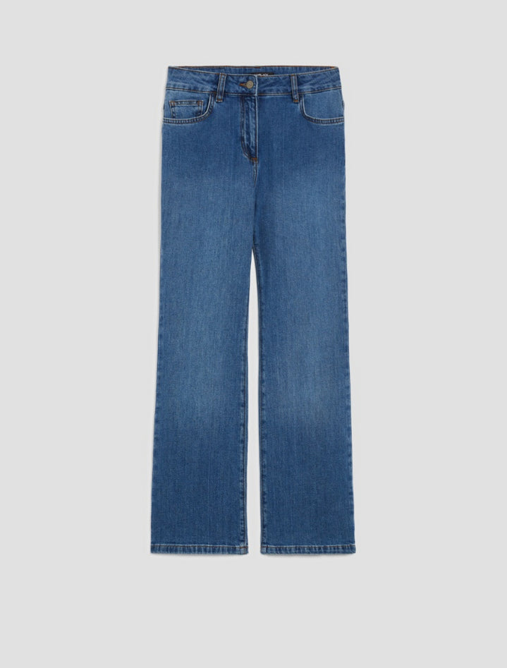 Con un tocco anni Settanta e un fit contemporaneo, i jeans mini-flare uniscono fascino rétro e spirito moderno. Realizzati in denim comfort di cotone stretch, accompagnano la silhouette con una linea slim fino al ginocchio che si apre leggermente al fondo, creando un effetto svasato discreto e sofisticato. La vita regolare con passanti, il design cinque tasche e la chiusura con zip nascosta e bottone ne fanno un capo essenziale e versatile, perfetto per look casual o più raffinati. Composizione: 98% cotone, 2% elastan. Lavaggio: in lavatrice max 30° a ridotta azione meccanica; non candeggiare; non asciugare in tamburo; asciugare appeso in ombra; ferro tiepido max 120°C; non lavare a secco; lavare il capo allacciato, separatamente e al rovescio; evitare contatti con indumenti o superfici chiare poiché il denim può stingere; appendere a rovescio evitando la luce diretta e non asportare macchie isolate. Codice prodotto PBMINIFLARE 2521186033200002 A25