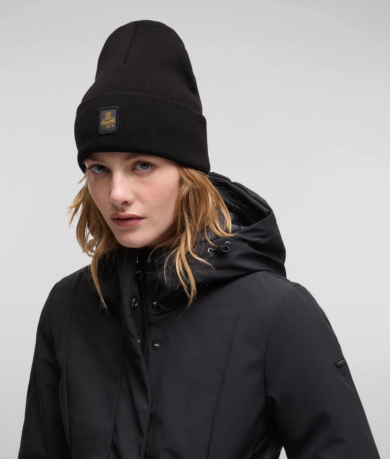 Berretto unisex in maglia a lavorazione liscia con bordo risvoltabile e patch logo ricamato, fit comodo e lunghezza media, realizzato in filato morbido e leggermente elasticizzato, caldo e confortevole, perfetto per look casual o raffinati. Composizione: 100% acrilico. Codice prodotto MA9083 B31908G06000 A25