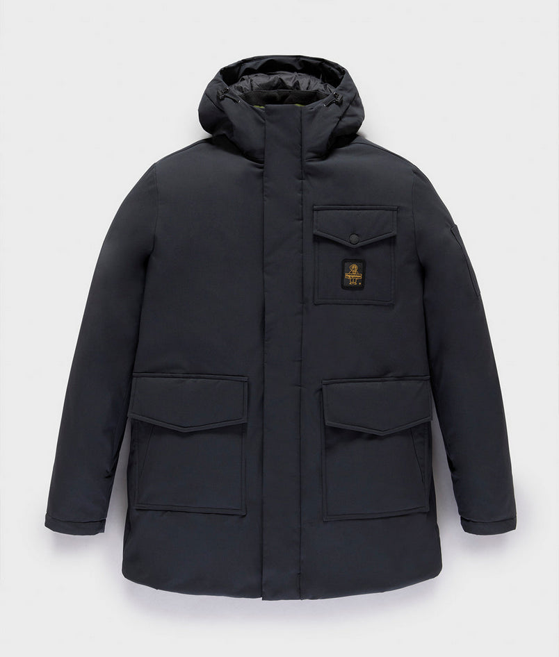 Linneo Jacket, parka da uomo dal look tecnico e ricercato ispirato agli iconici capi d'archivio RefrigiWear®. Realizzato in soft-shell tecnico con trattamento idrorepellente, offre elevate performance e un aspetto opaco e piacevole al tatto. L'interno foderato in nylon trapuntato verticalmente accoglie un'imbottitura RefrigiWear® Thermal Padding 150gr, 100% animal-free, calda e confortevole. Dotato di cappuccio regolabile con coulisse, chiusura frontale con zip a doppio cursore e patta protettiva, tasche frontali con patta, pratiche tasche interne e iconico taschino sul petto con patch RefrigiWear®. Un capo versatile, funzionale e perfetto per affrontare l'inverno con stile. Composizione: esterno 95% poliestere, 5% elastan; fodera 100% nylon; imbottitura 100% poliestere (RefrigiWear® Thermal Padding). Codice prodotto XT3790 G94300G00891 A25