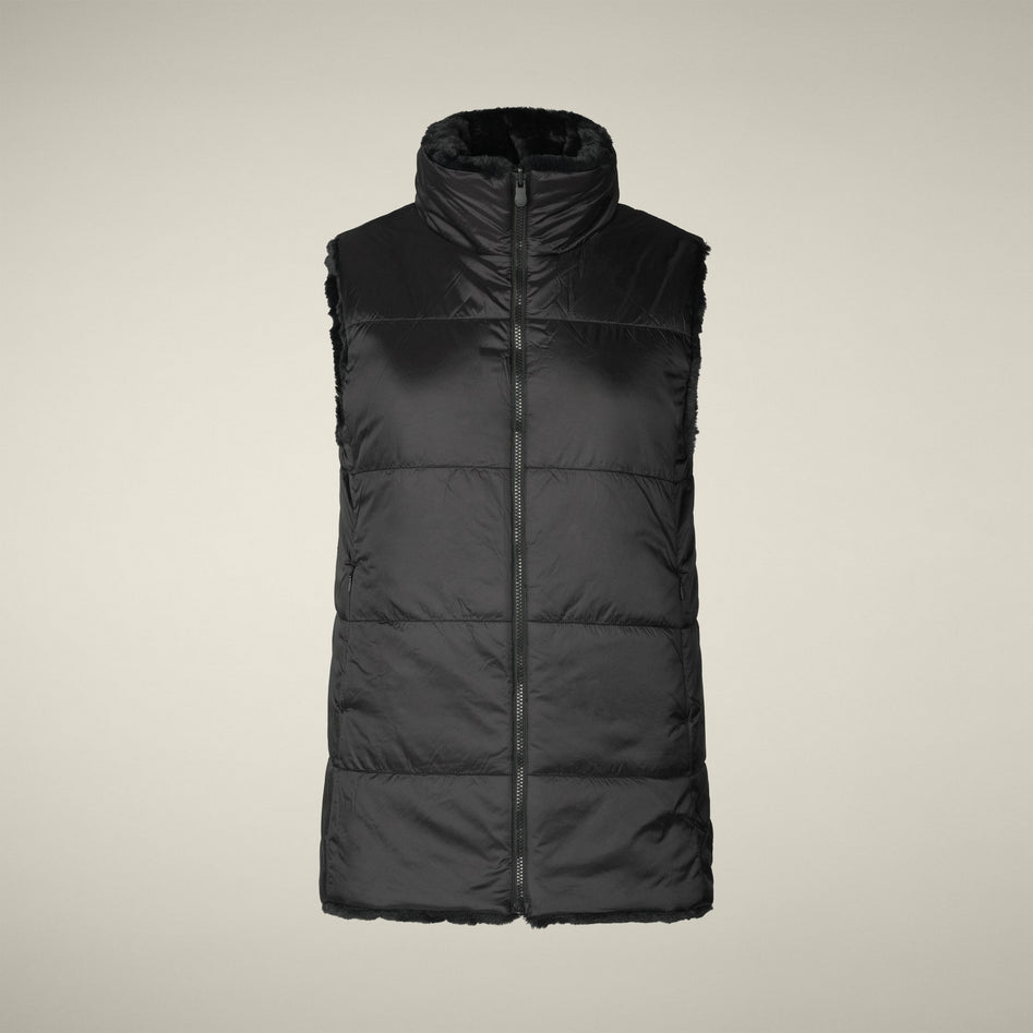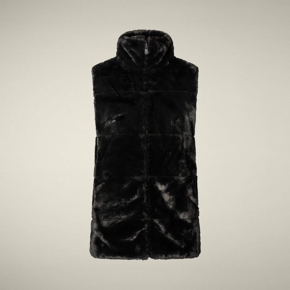 Il gilet donna modello Nives è reversibile e unisce un lato morbido in pelliccia sintetica a un lato trapuntato, con collo alto, due tasche, zip centrale con cursore reversibile, tirazip personalizzato e logo tondo coordinato su entrambi i lati. Realizzato in morbida pelliccia sintetica 100% poliestere riciclato. Lavaggio a mano a freddo, non candeggiare, non usare l'asciugatrice, non stirare, non lavare a secco, non centrifugare. Codice prodotto D82493W-FURY2110000 A25