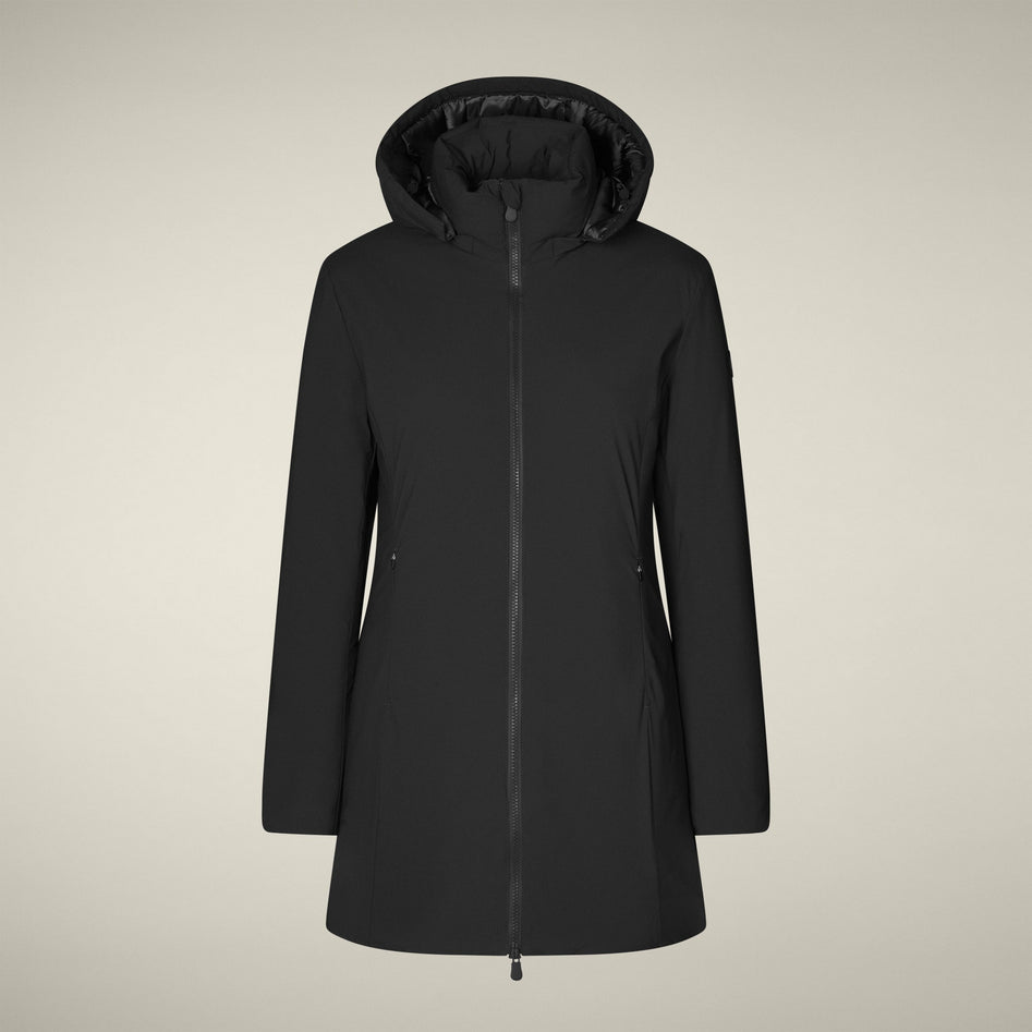 Il parka donna modello Rachel firmato Save The Duck sfida pioggia e freddo con tessuti riciclati e imbottitura animal free in Recycled Plumtech®, cappuccio rimovibile e regolabile, zip centrale water-resistant e tasche zippate; i tiretti personalizzati e il logo tono su tono incollato a caldo sulla manica aggiungono dettagli distintivi. Realizzato in 100% poliestere riciclato con membrana poliuretanica, garantisce ottime performance di impermeabilità e traspirabilità (5000 wp mm/24h - 5000 mvp g/m²/24h); l'imbottitura è in PET ricavato da bottiglie di plastica riciclate e la fodera in 100% nylon riciclato. Lavaggio a macchina ciclo delicato fino a 30°C, non candeggiare, non usare l'asciugatrice, non stirare, non lavare a secco, asciugare steso senza centrifuga. Codice prodotto D40060W-MATT2110000 A25
