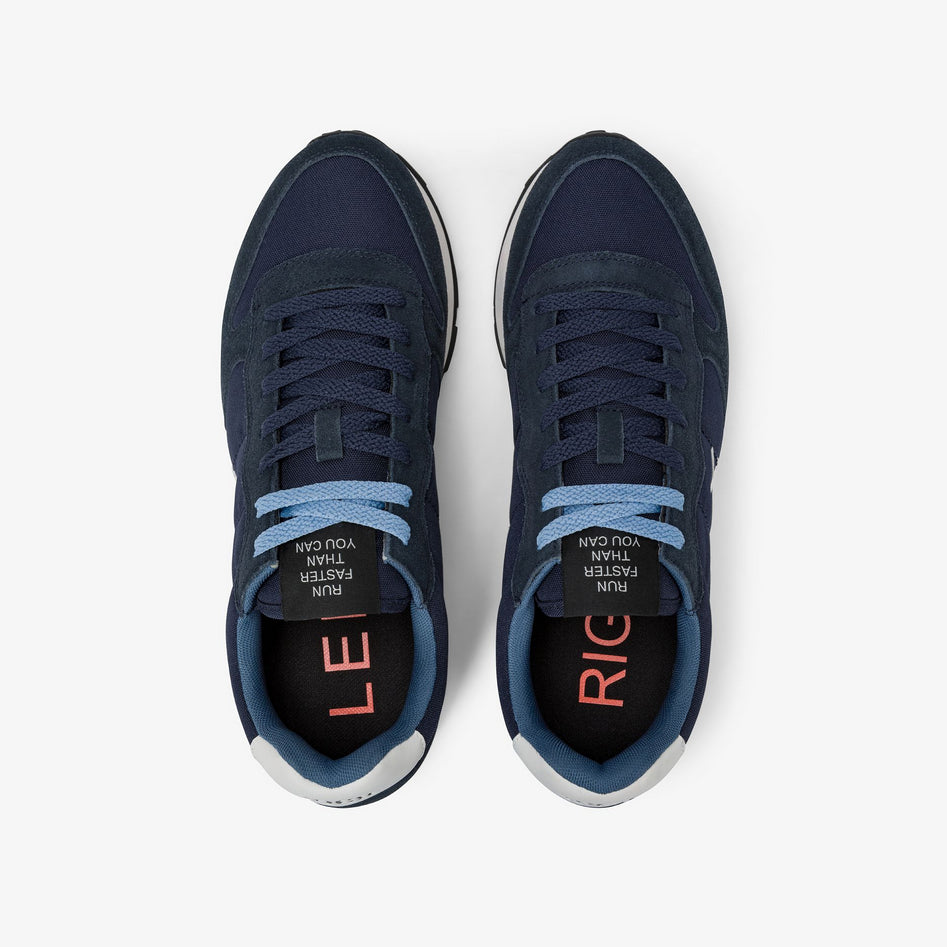 Sneaker SUN68 Tom da uomo in stile running, realizzata in nylon e suede con chiusura con lacci in cotone, logo ricamato sul lato, fodera in micro mesh, suola in EVA fresata con battistrada in gomma. In equilibrio tra leggerezza sportiva e attitudine urbana. Composizione: 52% pelle, 42% residui tessili o composizione non determinata, 6% poliuretanica. Codice prodotto Z4510107 A25